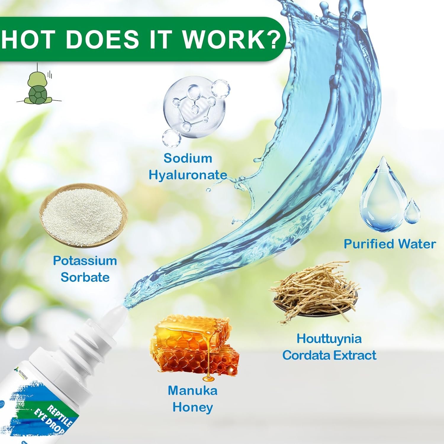 This product is specially formulated to relieve eye irritation, redness, and discharge in bearded dragons, turtles, geckos, snakes, and other exotic pets. It promotes healing and helps flush out debris, bacteria, and irritants, making it perfect for regular eye care or recovery from minor infections.