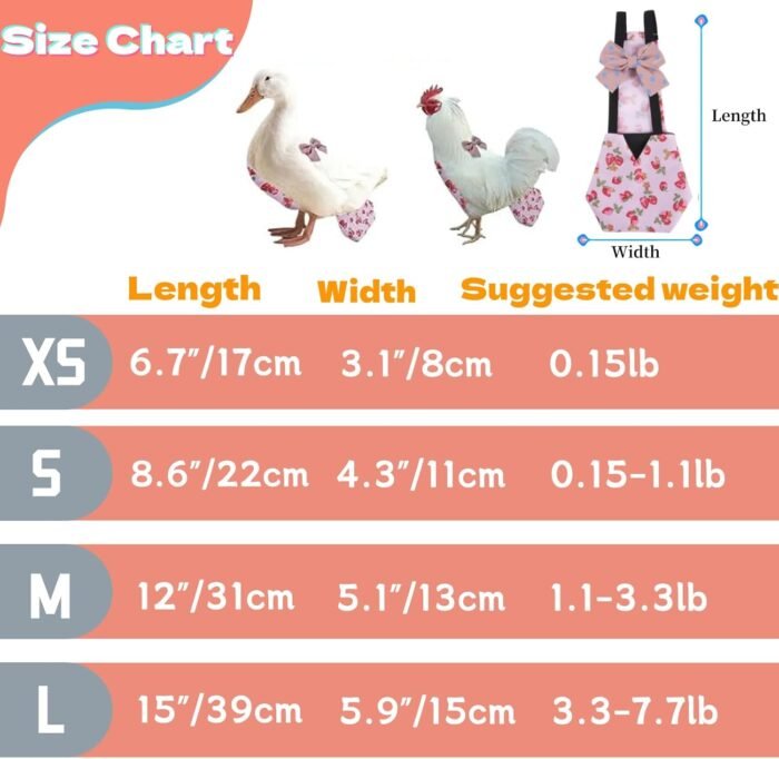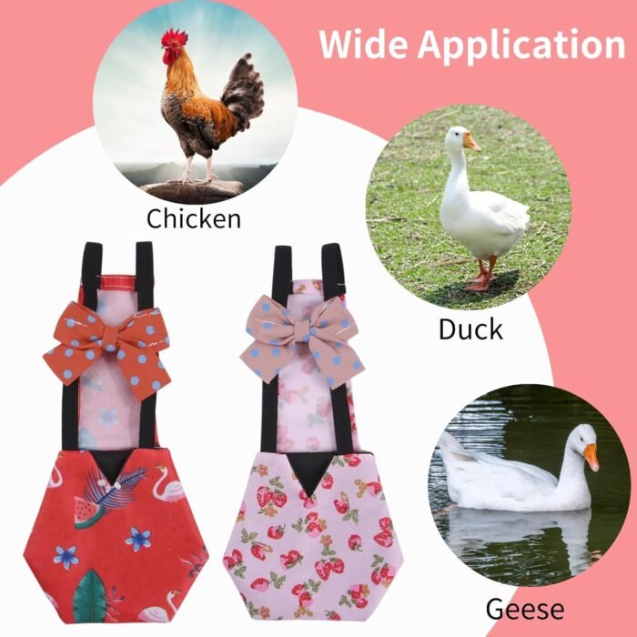 Our reusable chicken diapers are designed to provide a comfortable and hygienic solution for pet chickens, ducks, geese, and other poultry. Made from breathable and comfortable waterproof materials, these diapers are gentle on your pet’s delicate skin and ensure long-lasting comfort. The tail area features built-in nylon material to prevent leaks, and the lightweight design is durable enough to withstand frequent use and washing.
