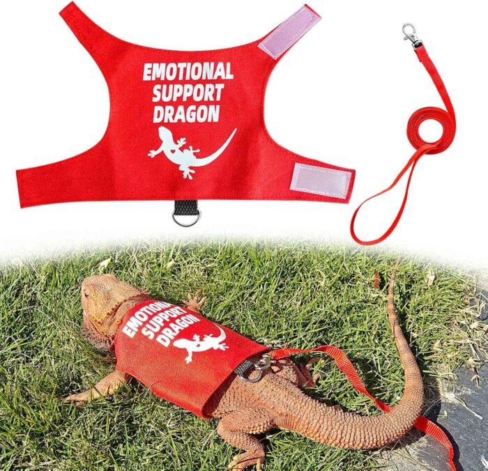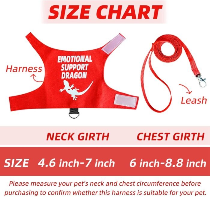 Romansk Bearded Dragon Harness and Leash Set – Escape Proof Adjustable Lizard Reptiles Harness with Short Leash for Walking Outdoor – Fun Emotional Support Dragon Designs