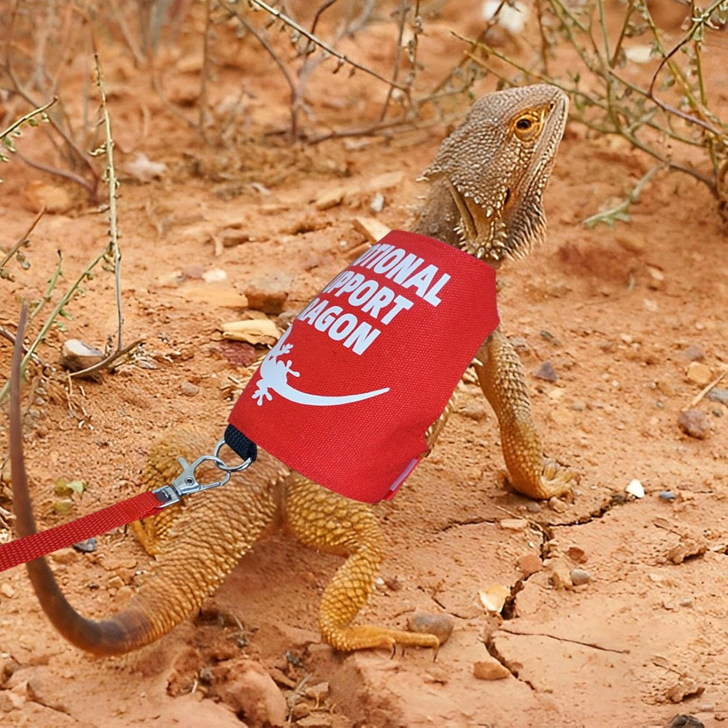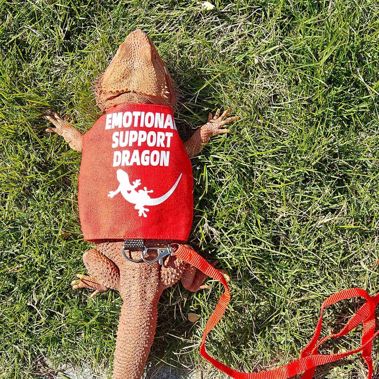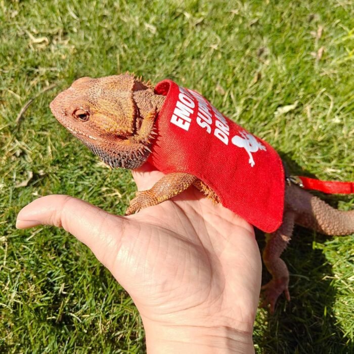 Elevate your pet’s style with our custom "EMOTIONAL SUPPORT DRAGON" bearded dragon harness and leash set, perfect for bearded dragon costumes and unique outfits. This exclusive accessory is designed to provide comfort, durability, and a touch of personality to your pet’s wardrobe.