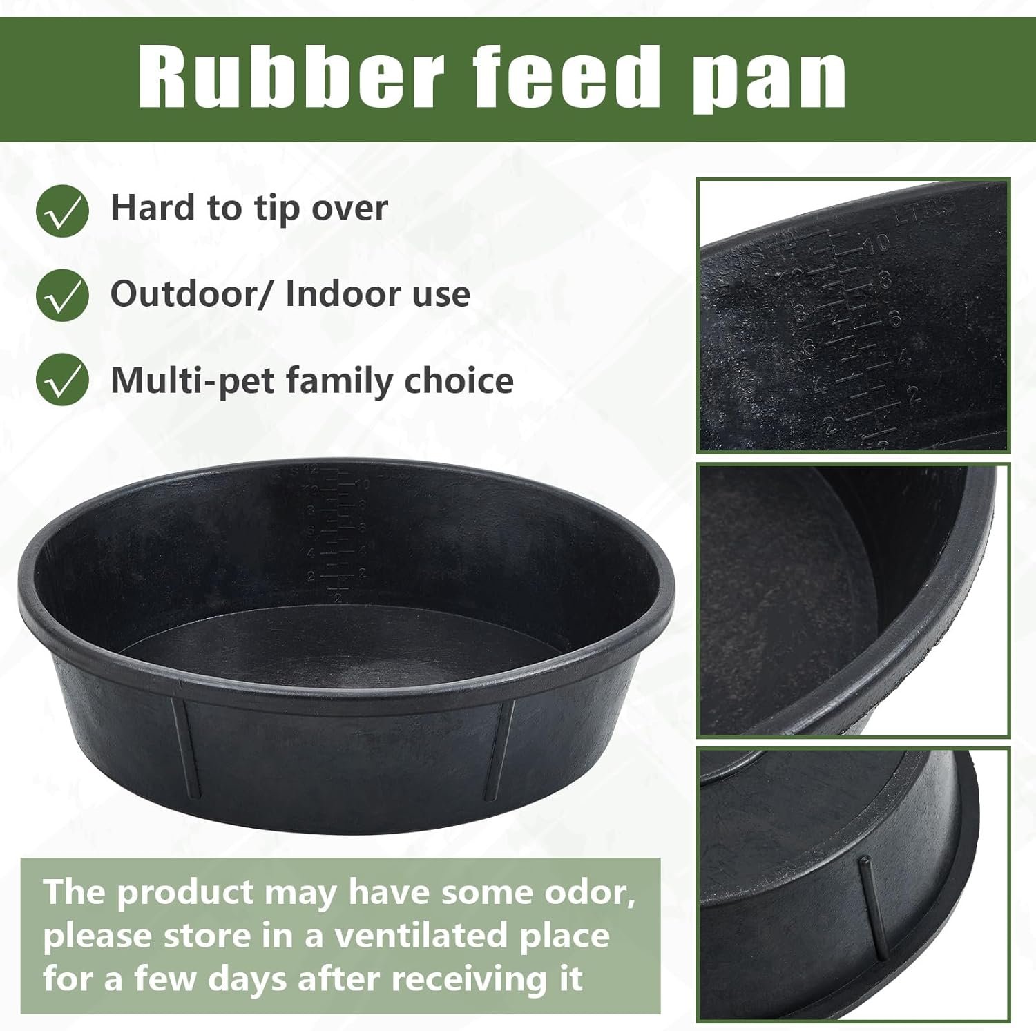 - Flexibility and Stackable: Crafted from quality rubber, these feed pans are built to last and have a stackable design for convenient storage.