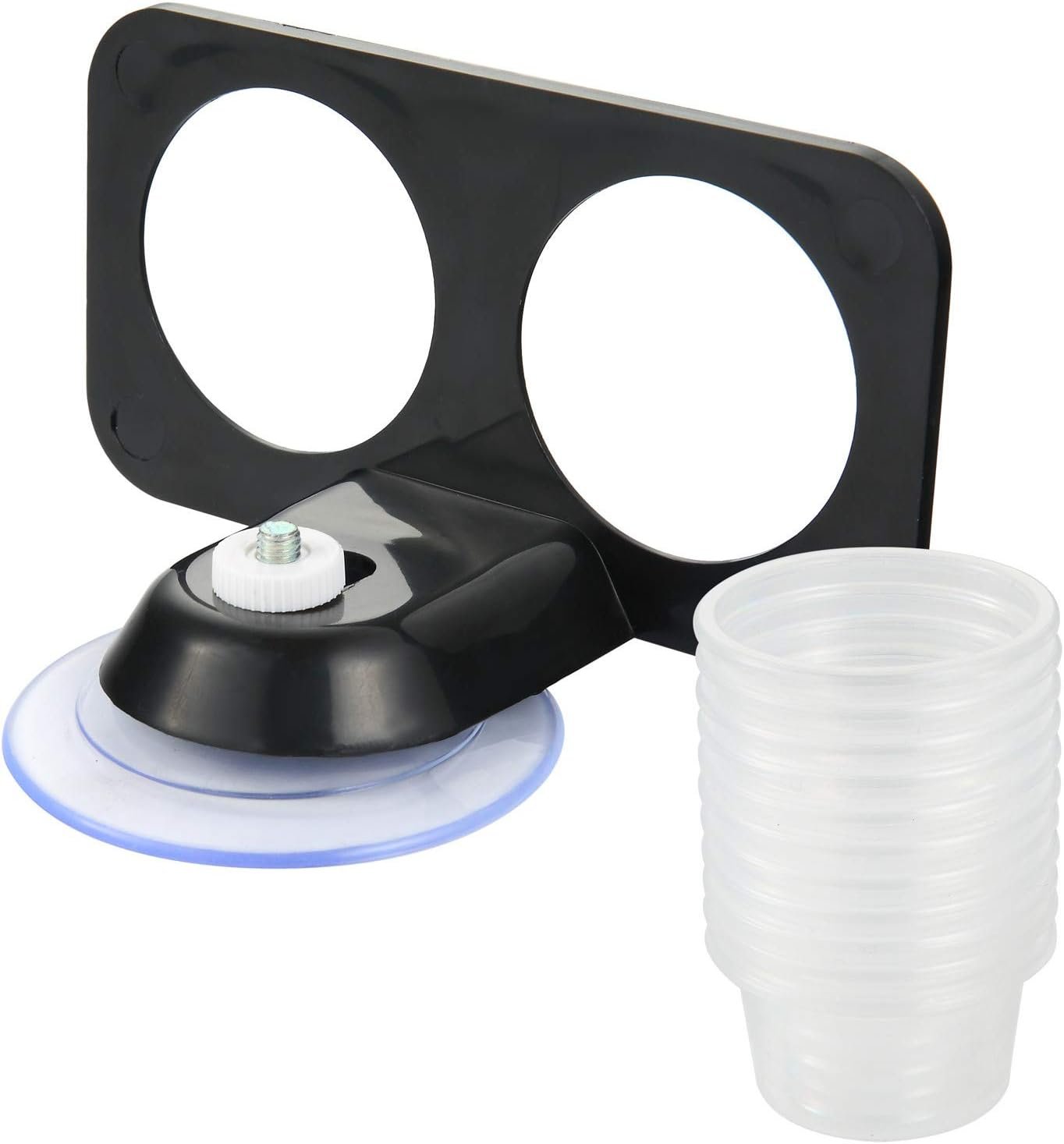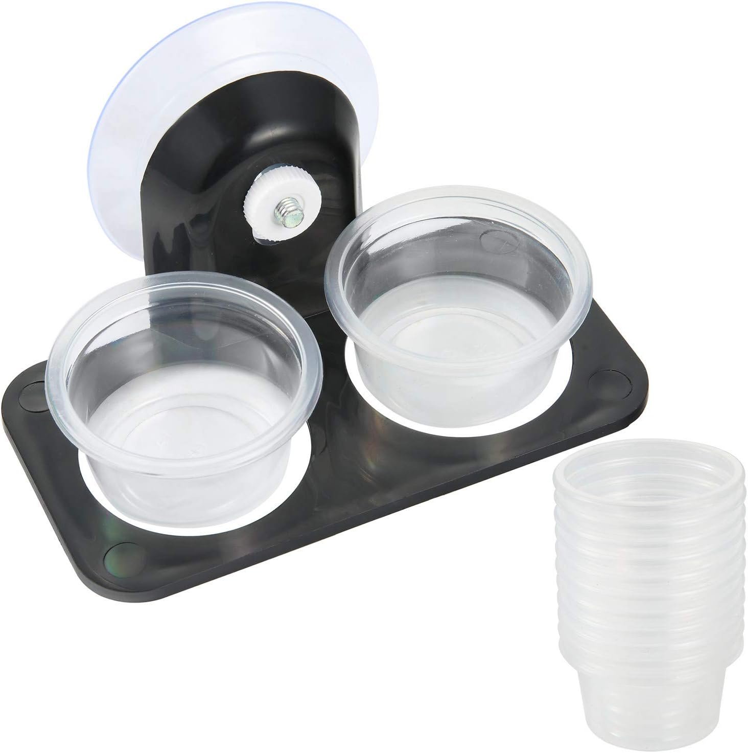 SLSON Gecko Feeder Ledge Acrylic Improved Suction Cup Reptile Feeder with 20 Pack 1 oz Plastic Bowls for Reptiles Food and Water Feeding,Black