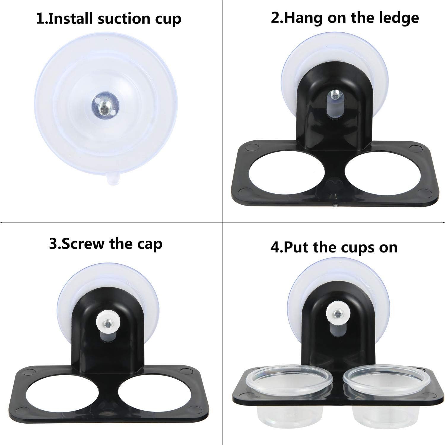 Home Reptiles & Amphibians SLSON Gecko Feeder Ledge Acrylic Improved Suction Cup Reptile Feeder with 20 Pack 1 oz Plastic Bowls for Reptiles Food and Water Feeding,Black