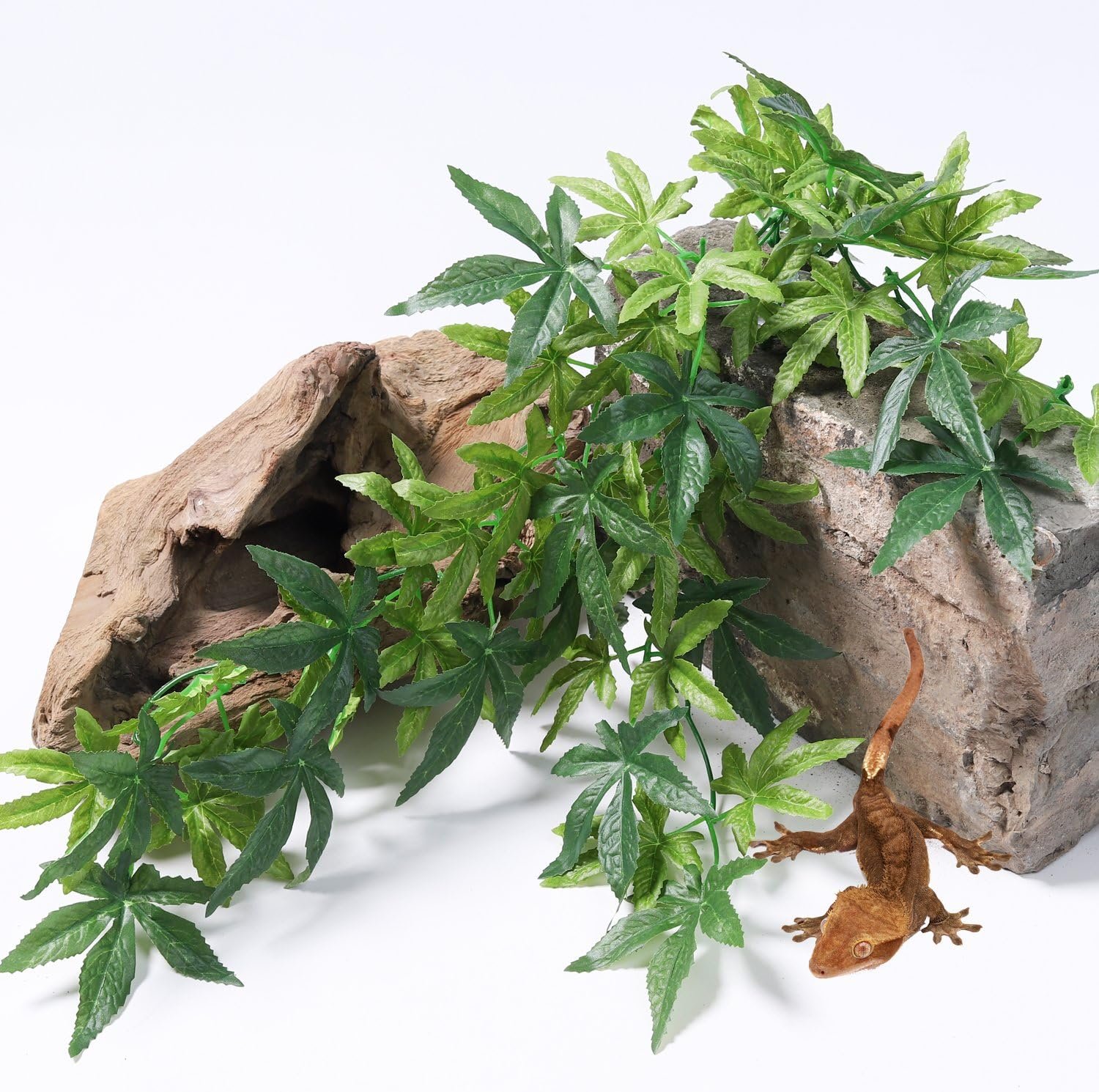 Our artificial terrarium plant is designed to replicate the plants that your pet would find in nature, providing a lifelike decor that makes your habitat more vibrant and colorful. The plant gives your reptiles, bearded dragon, iguana, lizard, snake, or turtle a sense of being at home in the wild. As artificial plants do not require nearly as much maintenance, they are far easier to take care of, making them ideal for reptiles, snakes, bearded dragons, frogs, toads, salamanders, and newts decorations.