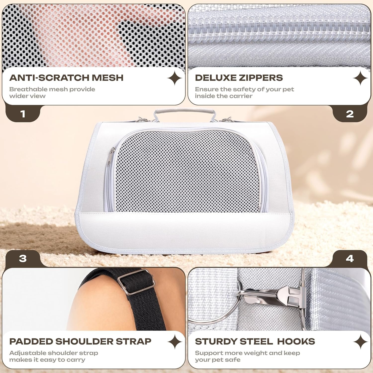 Small Pet Carrier for Cats, Rabbits, Guinea Pigs – Airline Approved Soft-Sided Travel Bag, Lightweight Dog Carrier, Ventilated & Foldable (Up to 10 lbs, Beige)