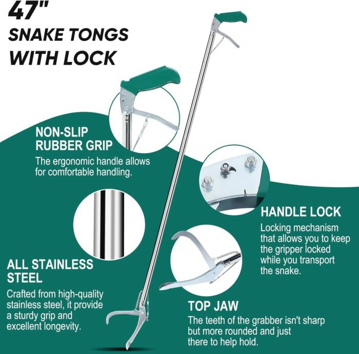 - Non-slip Rubber Grip: ergonomic handle with non-slip rubber grip, making it easier to catch and release snakes without harm
