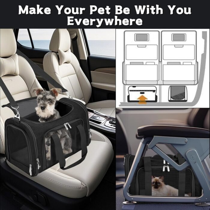 Soft-Sided Cat/Dog/Pet Carrier, Collapsible Pets Travel Carriers for Big Cats/Small Dogs with Shoulder Strap & Removable Mat, Mesh Puppy Carry Bag, Up to 16 Lbs, TSA Airline Approved(Black)