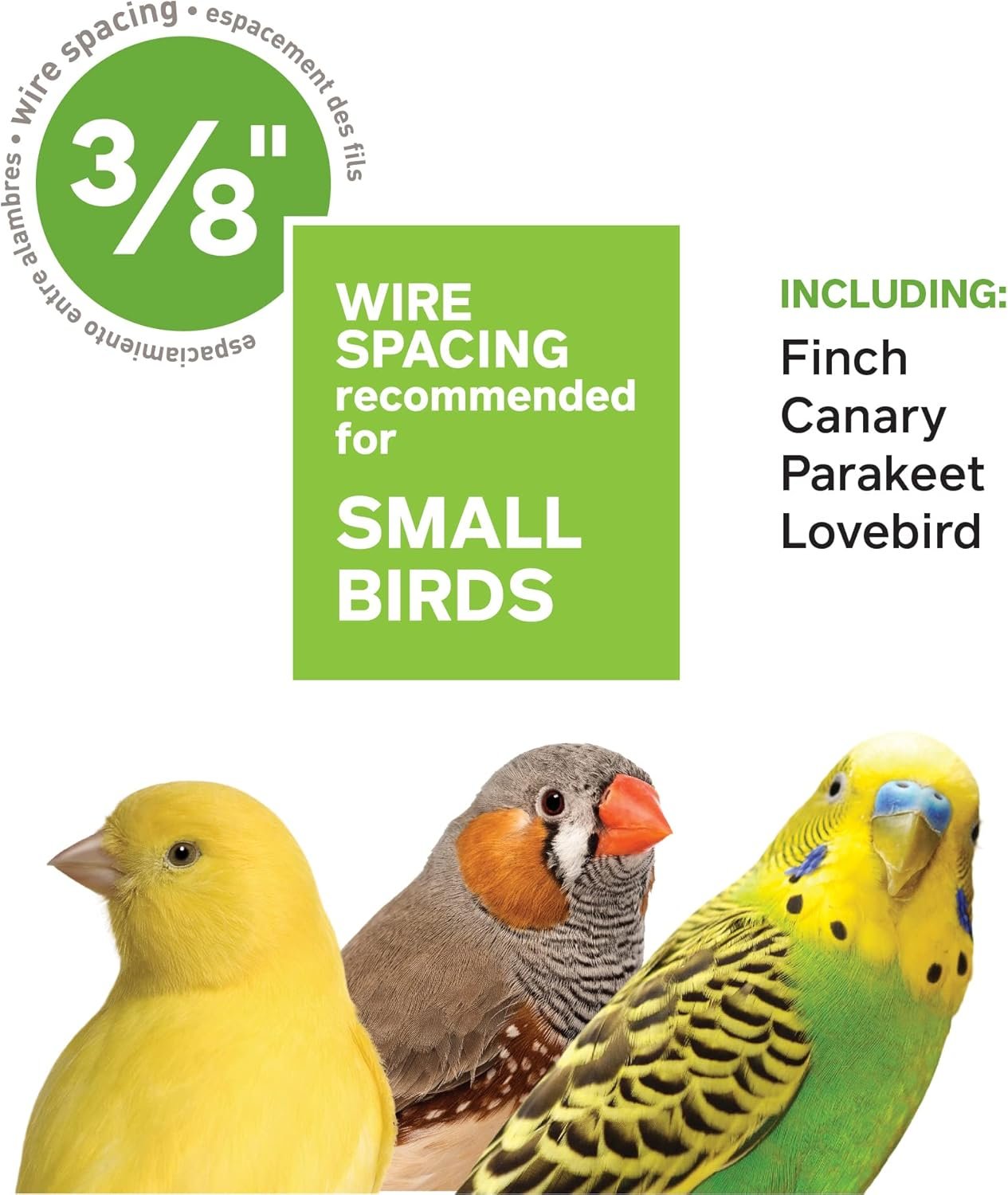 - Wire Spacing: The 3/8’’ wire spacing is suitable for small birds, ensuring their safety and security within the cage.