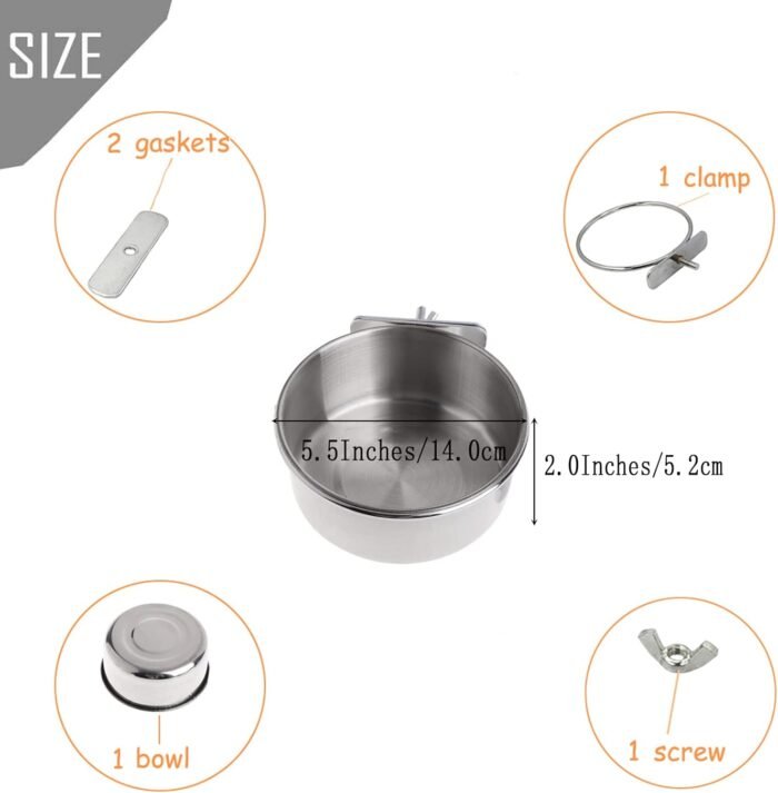 - Easy to Install: Stainless steel bird bowl with clamp is easy to place in the cage and remove from the cage, not easy to fall down.