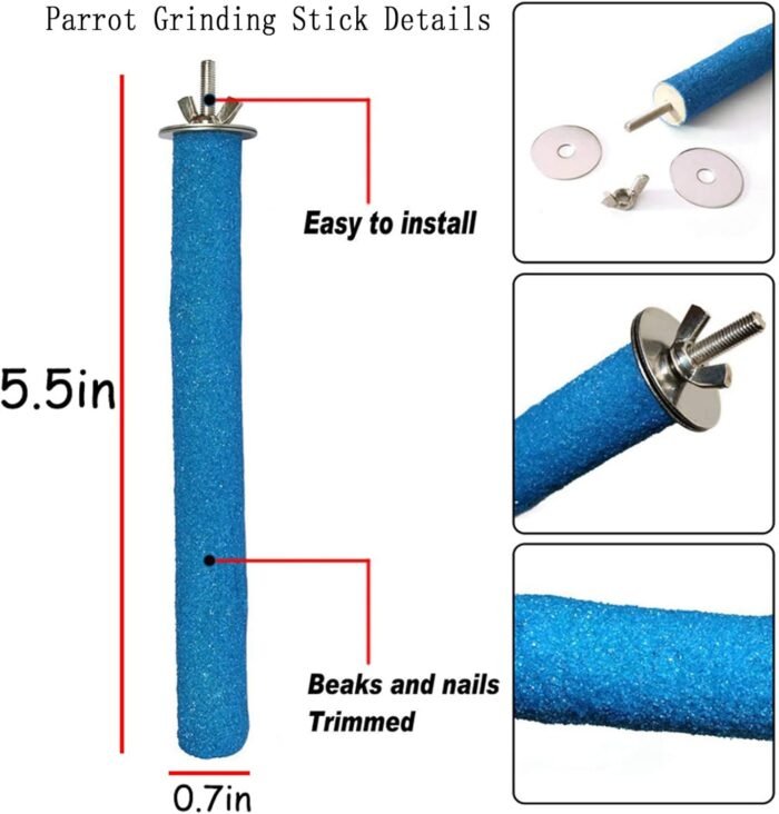 - 2 Pcs Bird Grinding stick (Color random); Size: 5.5×0.78 inches/14×2.0 cm