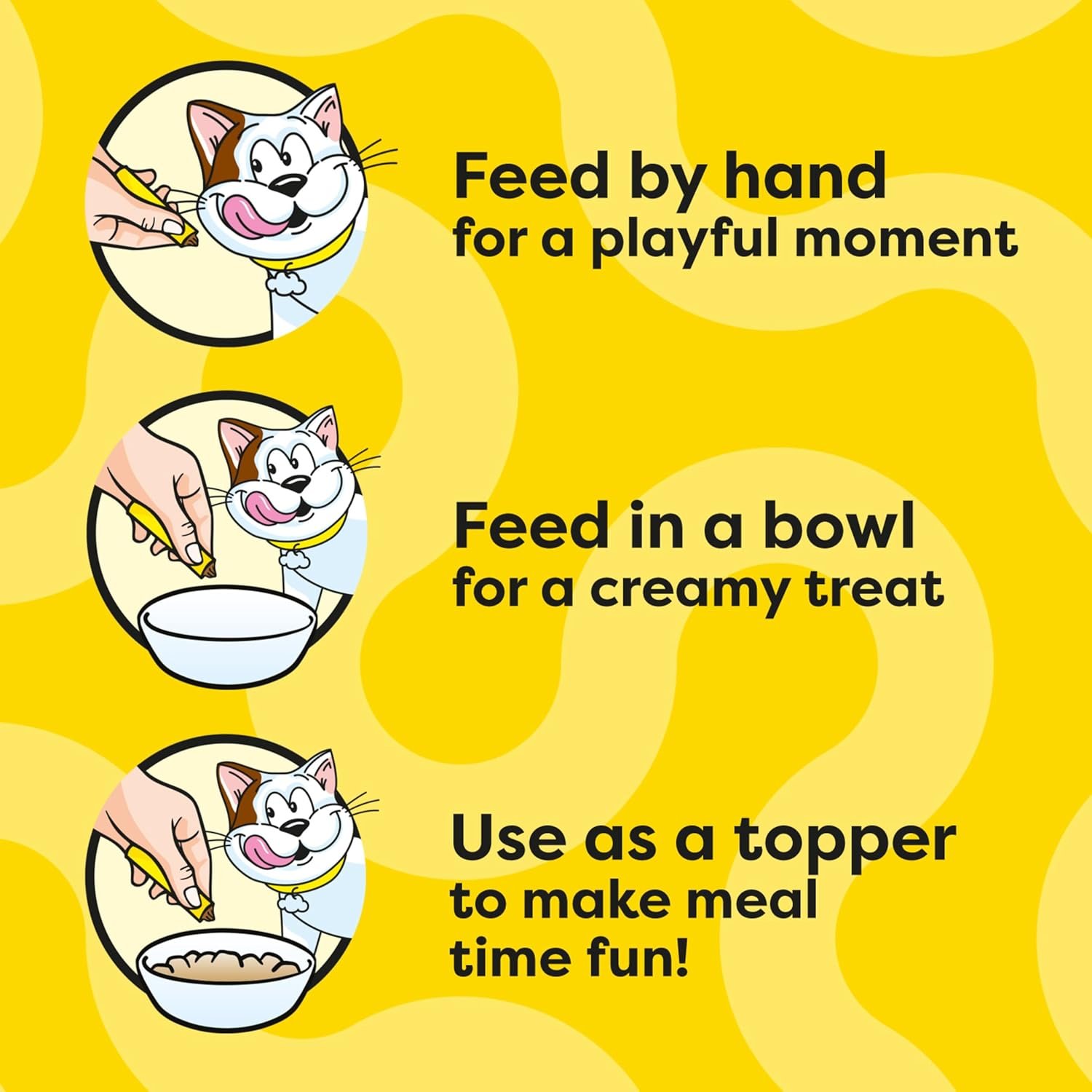 - Irresistible chicken or salmon flavor in a squeezable, creamy cat puree