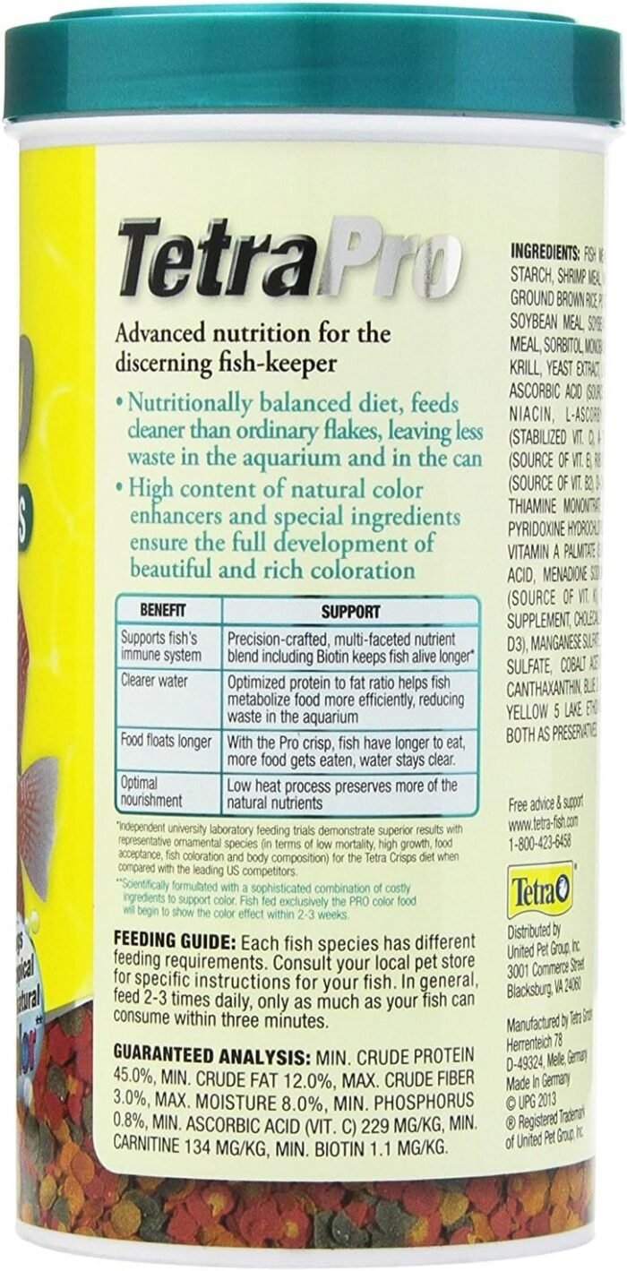TetraPro Tropical Color Crisps are a high-quality food option for tropical aquarium fish, offering a nutritionally balanced diet, beautiful color enhancement, and a clear-water formula. With its exclusive low-heat process, optimized protein-to-fat ratio, and biotin enrichment, it supports the overall health and immune system of fish. While it may require careful feeding and monitoring, the benefits to fish health and aquarium clarity make it a worthwhile choice for fishkeepers.