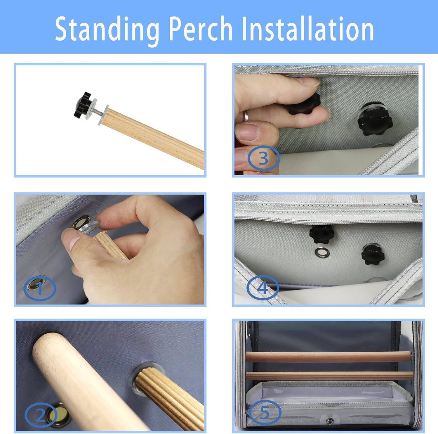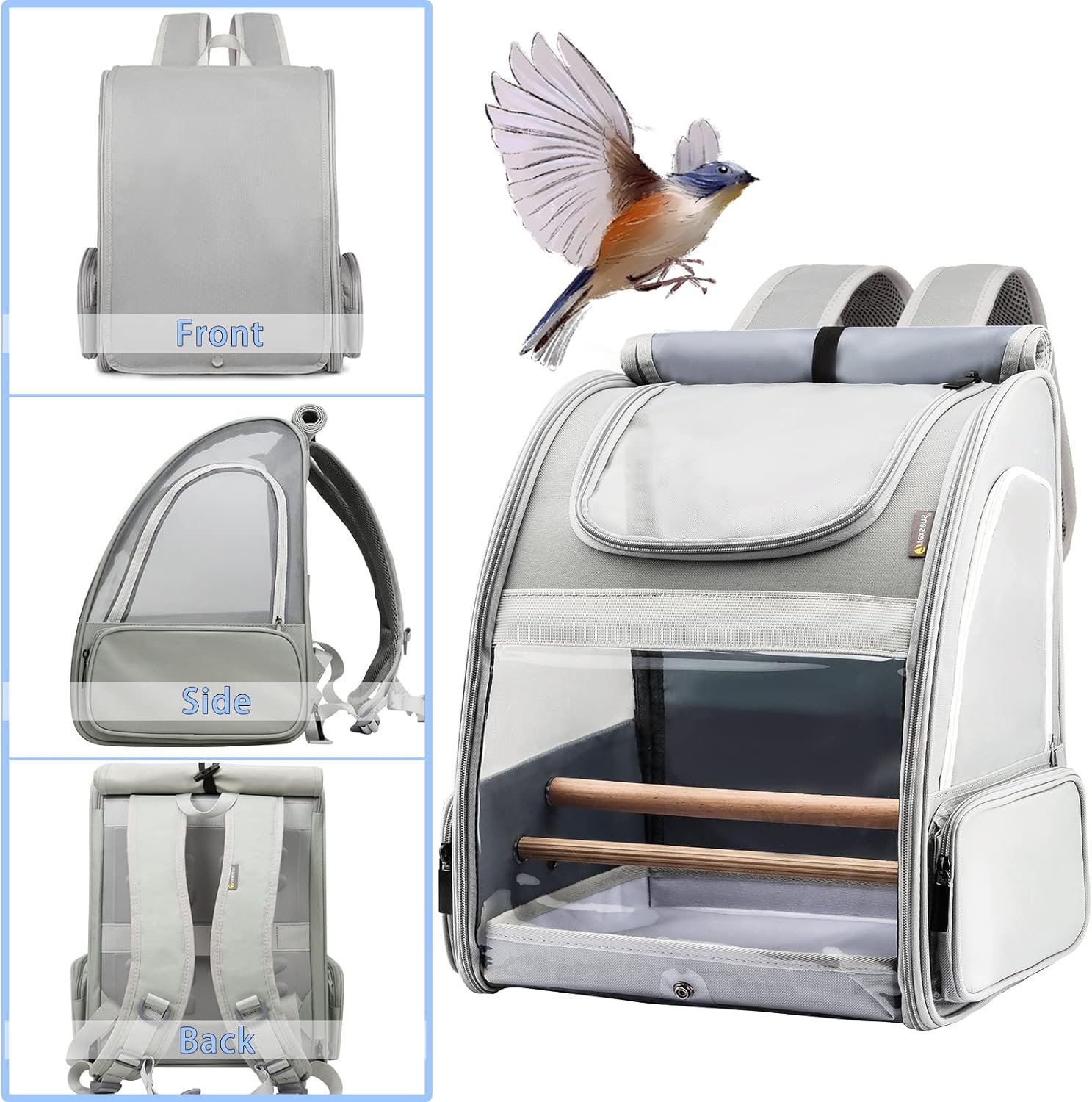 - Package Includes: Bird carrier backpack, wooden stand perch (2), and upgraded leakproof tray (1)