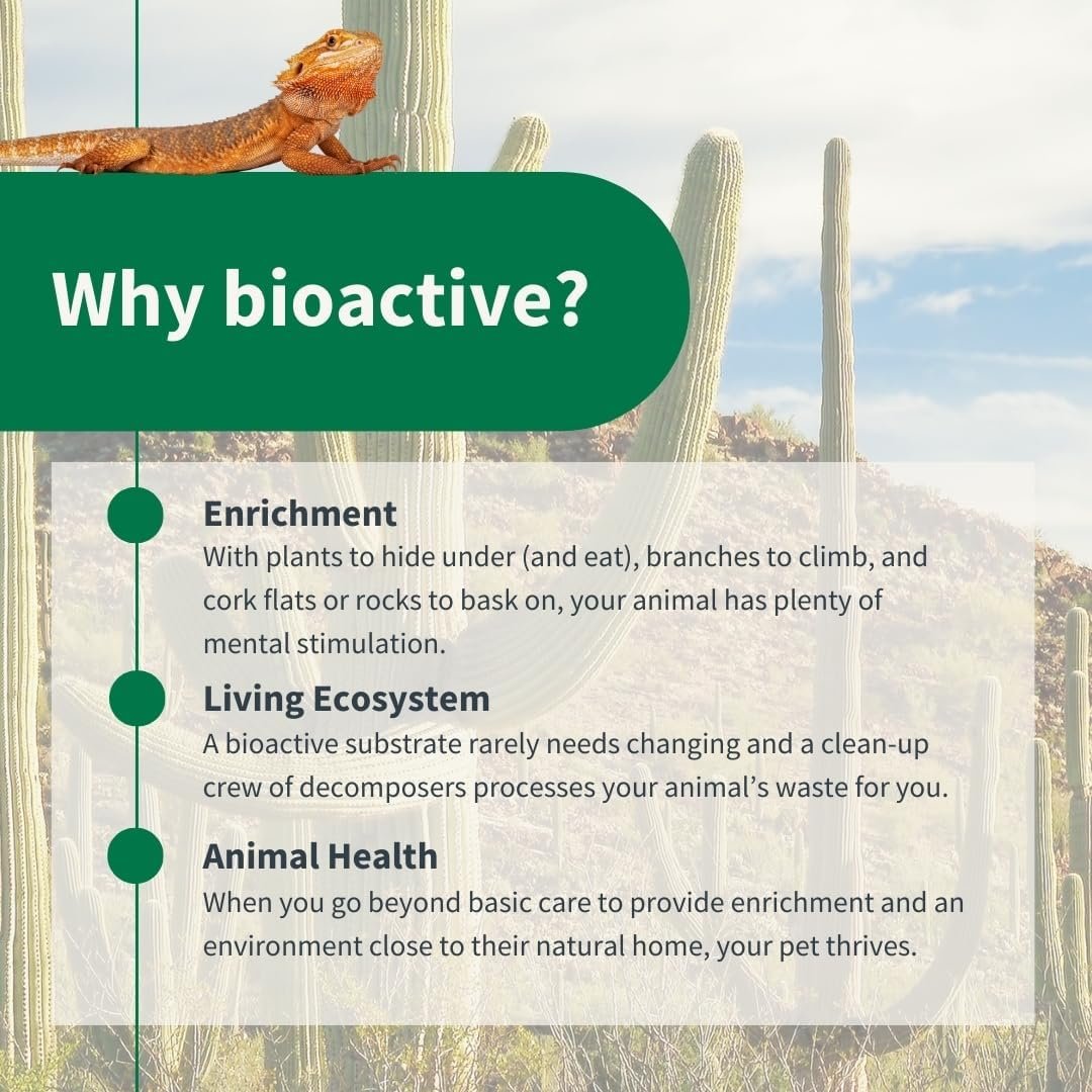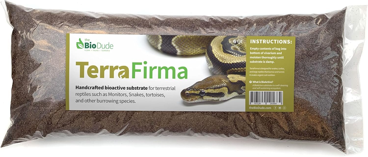 Terra Firma is designed to replicate the silty soil that many reptile and amphibian species dig burrows and tunnels in their natural habitats. It encourages burrowing, which aids in shedding, respiration, and hydration. This substrate also supports a balanced ecosystem when paired with plants and clean-up crew, recycling waste and returning nutrients to the soil for a clean, thriving bioactive ecosystem.