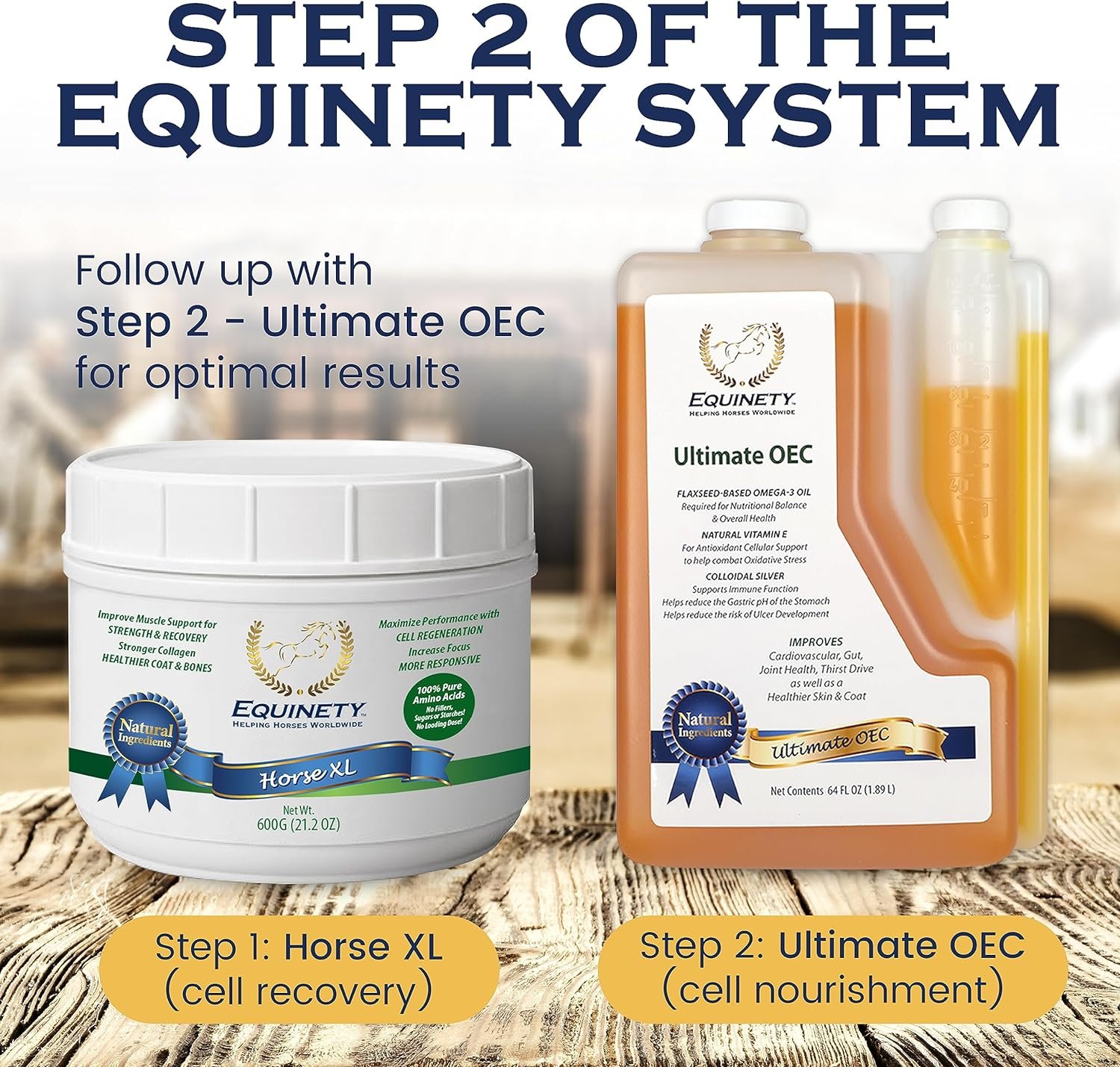 Equinety Ultimate OEC is a premium equine joint supplement designed to boost horse recovery, particularly in working and performance horses. This high-quality supplement supports gut, joint, skin, and coat wellness, making it an excellent choice for horses of all ages and types.