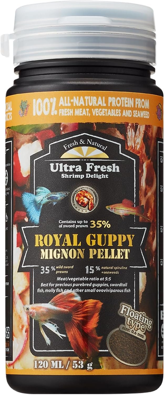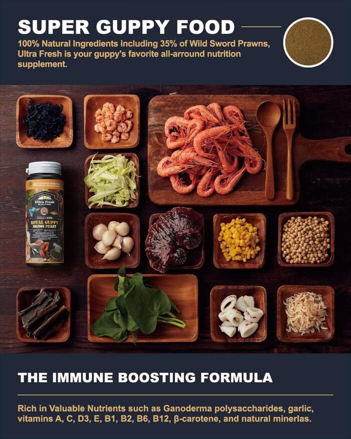 - High Palatability: Our guppy food contains up to 35% of wild sword prawns and all other 100% natural ingredients which make it highly nutritious without sacrificing superior taste—even the pickiest guppy can’t resist it!