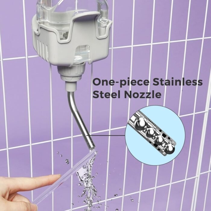 - One-piece Nozzle Design: Made of stainless steel, this design is hard to break off and features a roller ball for water flow, eliminating the risk of springs hurting pets.
