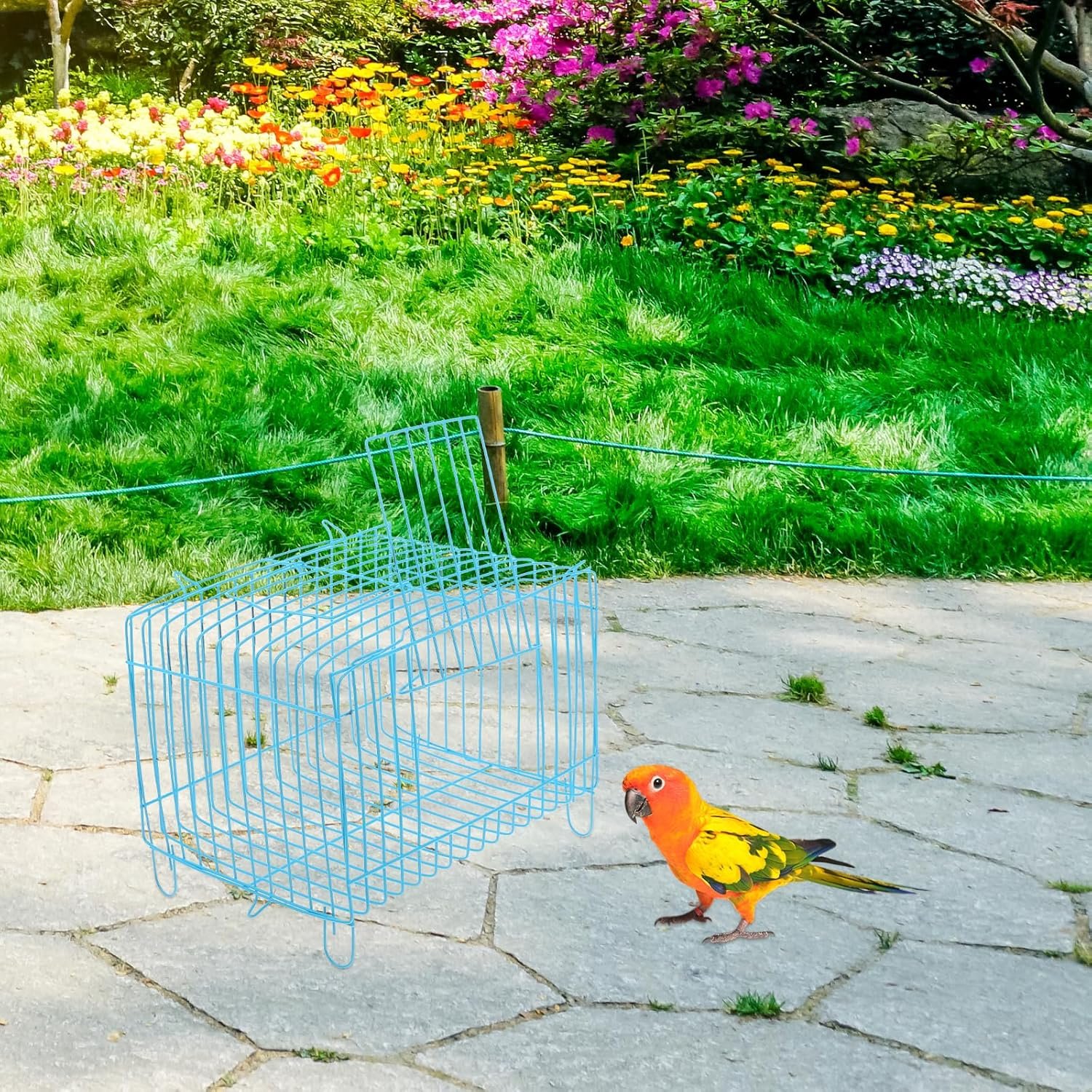 This bird cage is designed to be travel-carrying, making it convenient to take your pet birds to outdoor activities or travel. The safety protection design includes a sturdy iron structure, a safety door lock, and proper ventilation holes, which can stop birds from escaping or getting injured. The versatile design allows it to be used as a regular living cage for birds, providing enough space and comfort for your bird pets to be properly cared for and active at home.