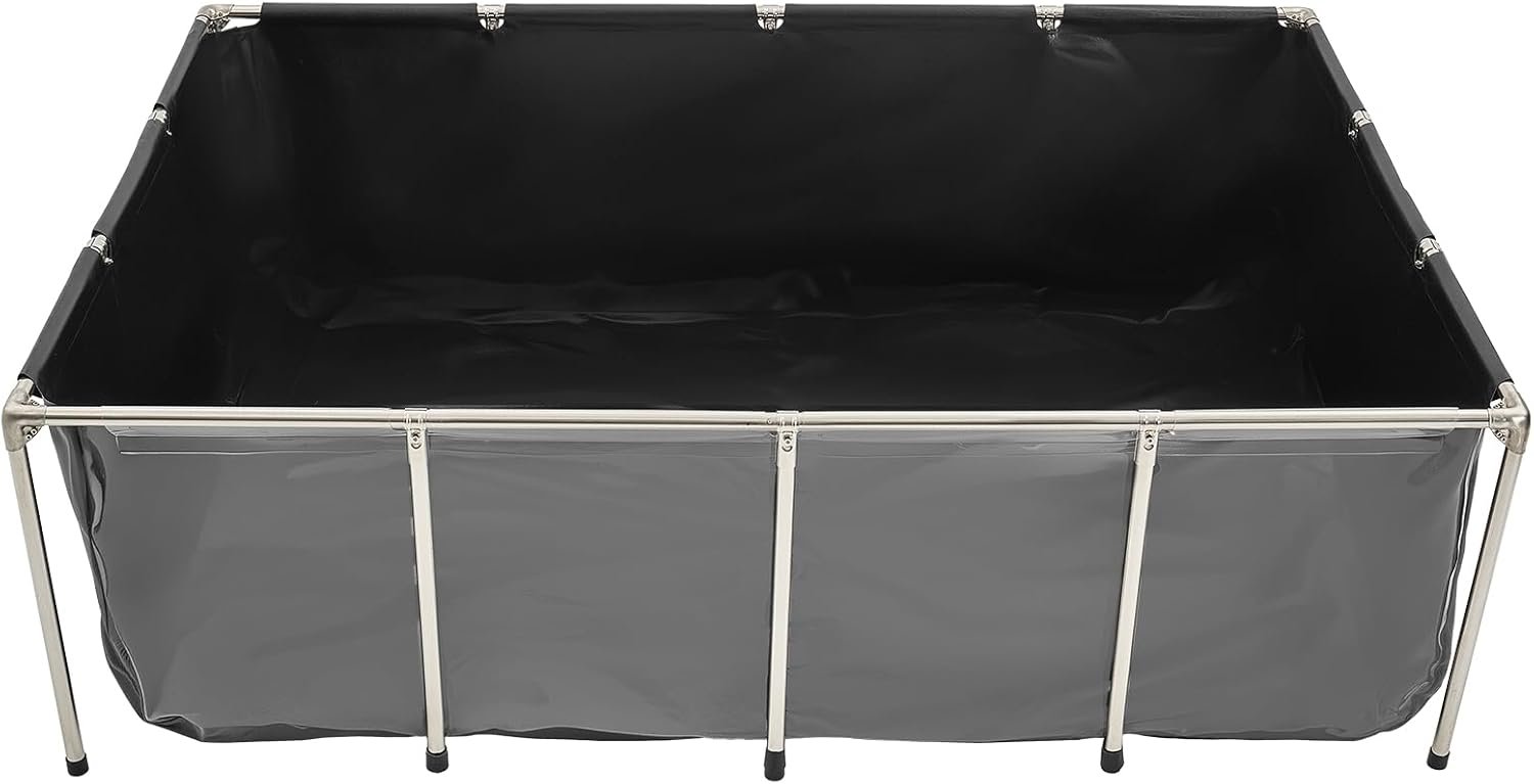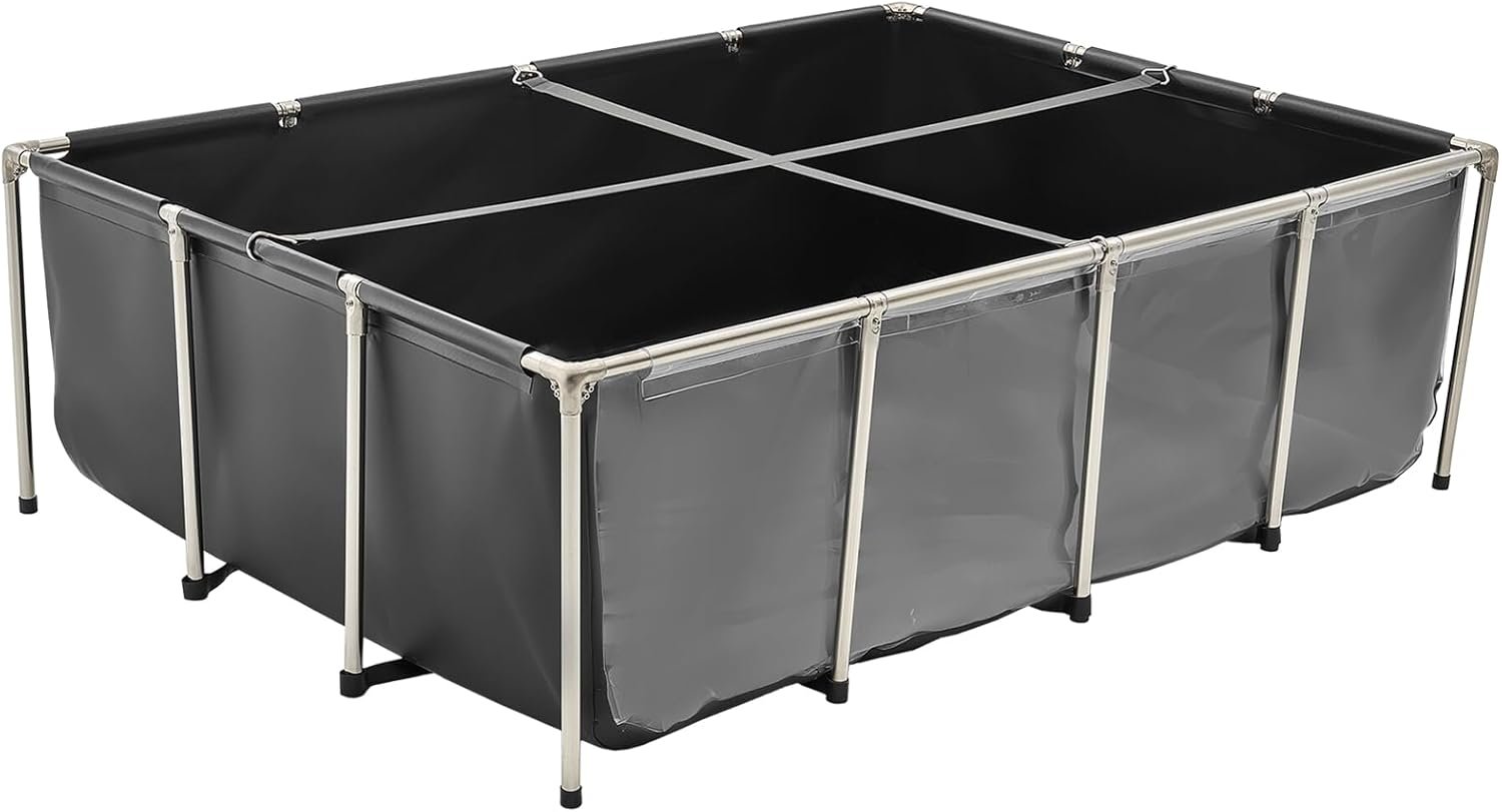 Home Fish & Aquatic Pets VEVOR Canvas Fish Pond, 470 Gal Above Ground Fish Pond, PVC Koi Tank with Clear Viewing Panel, Rectangular Goldfish Tank with Stainless Steel Frame & Drain Valve, for Breeding Koi, Irrigation(Black)