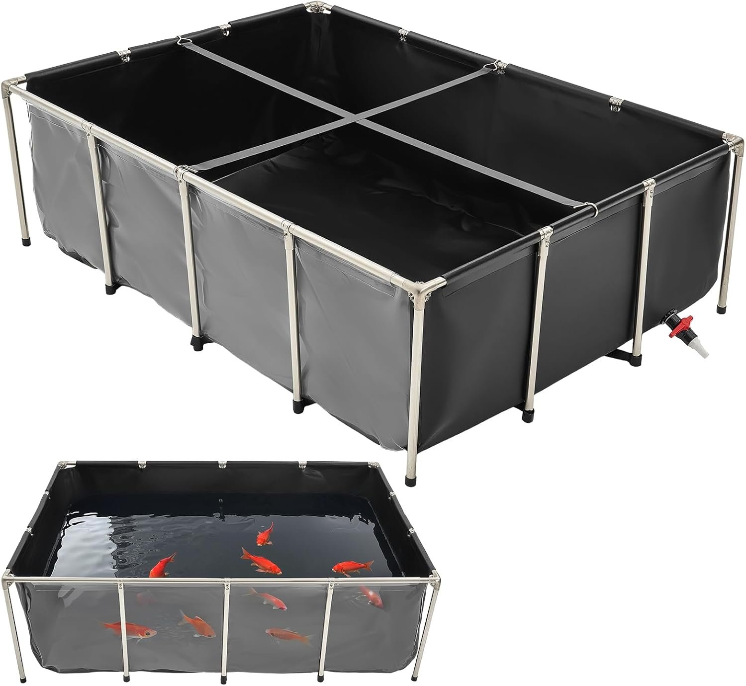 • Large Capacity: The pond measures 78.7 x 55 x 23.6 inches and holds up to 470 gallons, providing ample space for aquatic life.