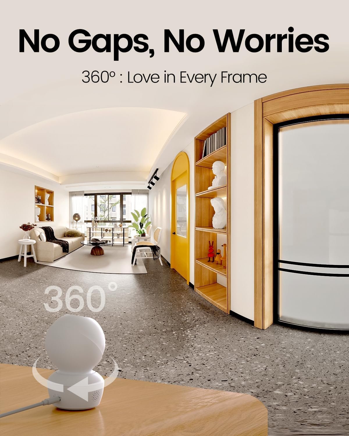 Experience stunning 2.5K resolution in live video or image that captures every detail of your home, room, kid, or pet. The 360° panoramic design of our dog cameras ensures comprehensive coverage of your living space, perfect for monitoring your baby, dog, doggy, puppy, or cat.