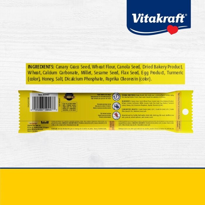 • Fortified with Vitamins and Minerals: Including Vitamin A, Vitamin E, Vitamin D3, Vitamin B12, and Riboflavin, these sticks provide essential nutrients for your bird’s overall health.
