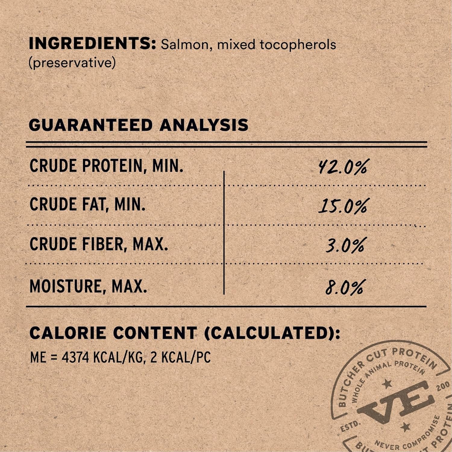 - Freeze-dried raw salmon cat treats packed with premium butcher cut raw protein