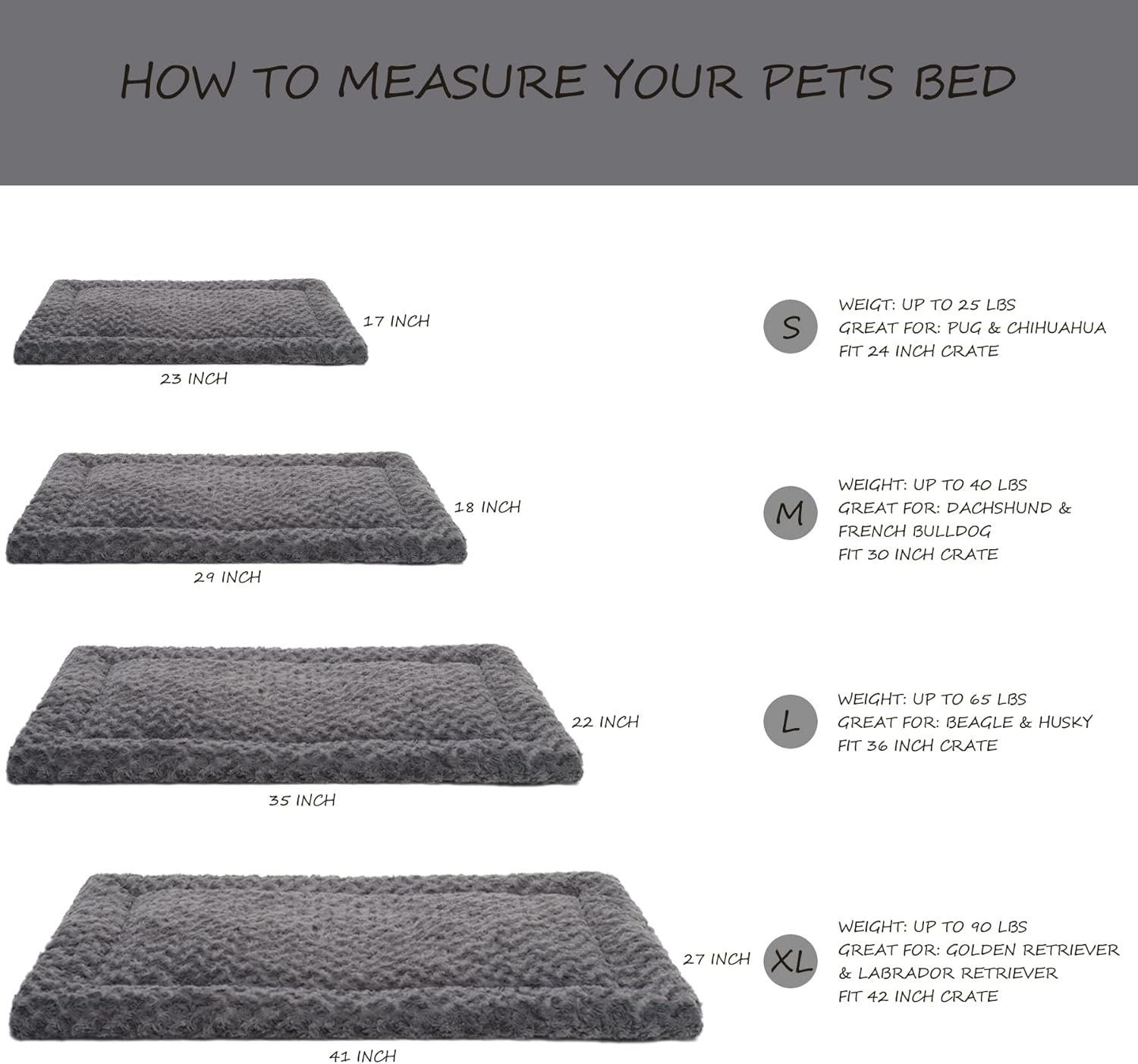 The L size measures approximately 35″L x 22″W x 1-1/2″H, working great as a medium dog bed mat for dogs up to 65 pounds. It’s an excellent choice if you want a softer pad for your pet that is not too thick.