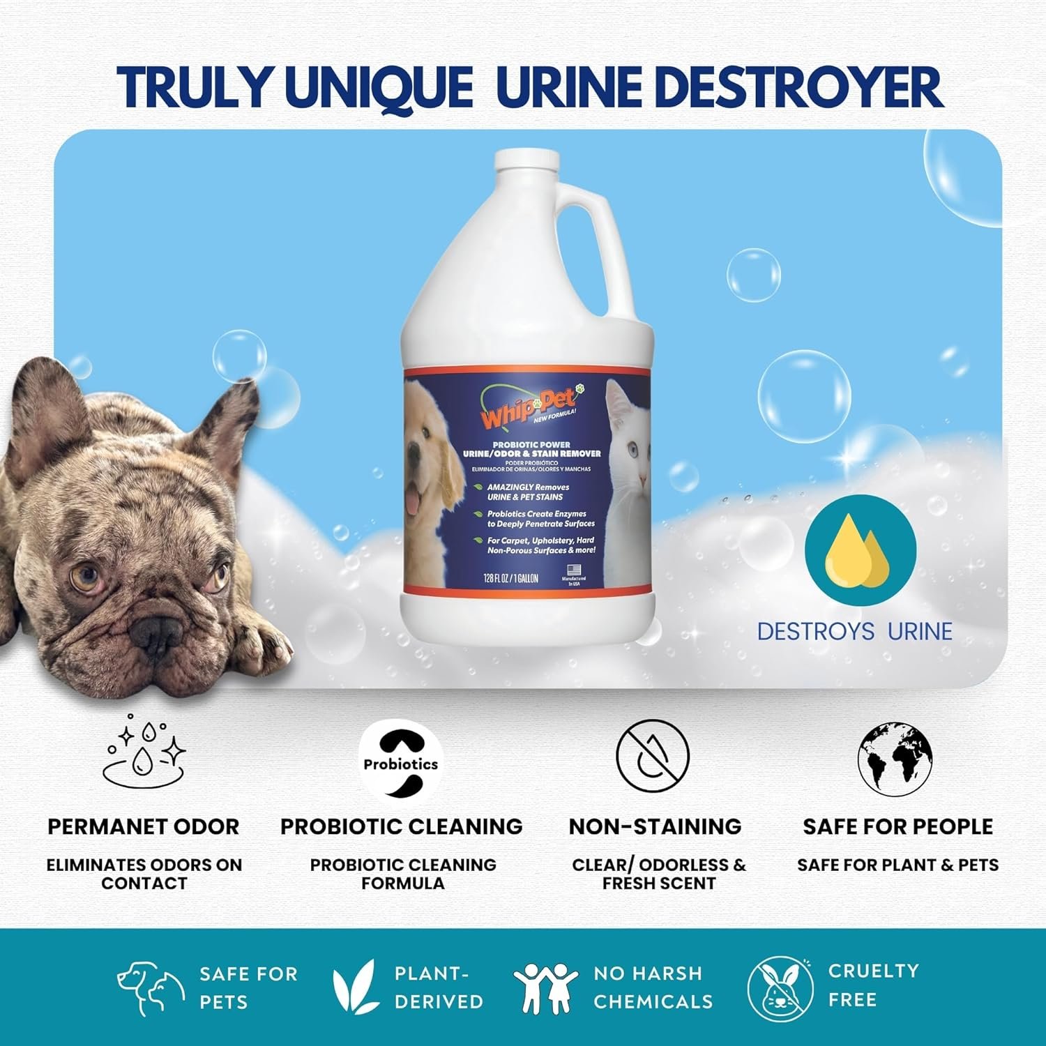 Whip-Pet Pet Odor Eliminator and Stain Remover – Enzymatic Cleaner for Dog Urine and Carpet Odor Eliminator – Pet Odor Remover – 128 fl oz / 3.78L
