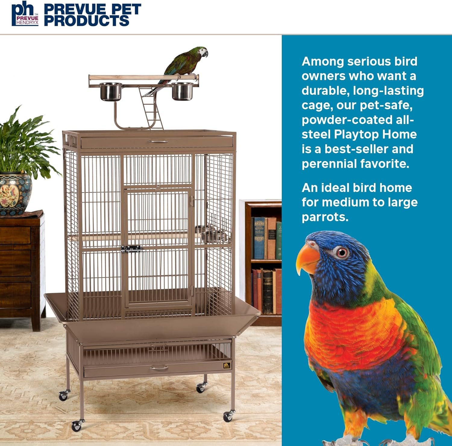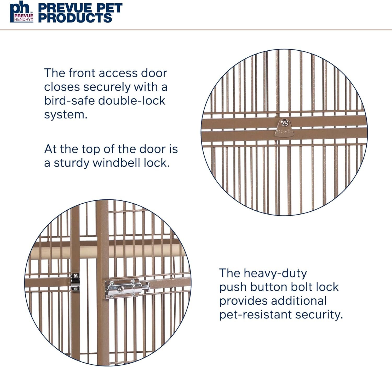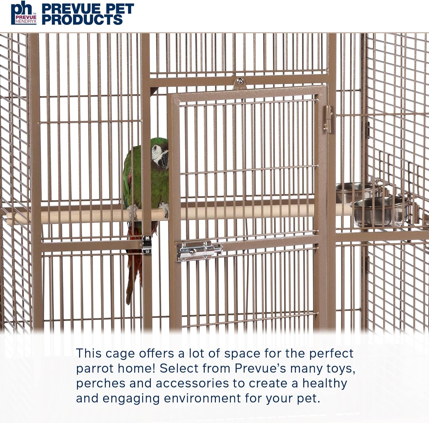 - Spacious interior with 3/4-inch wire spacing for comfortable bird movement