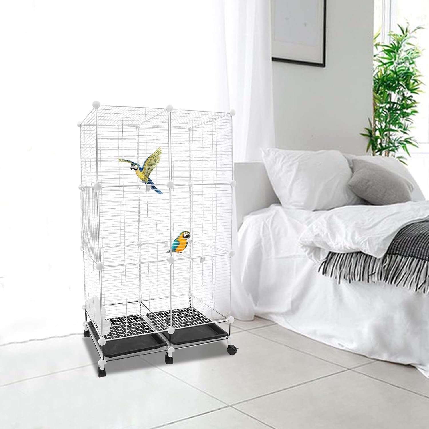 - Movable: Universal wheels with brakes for easy moving or securing the cage.