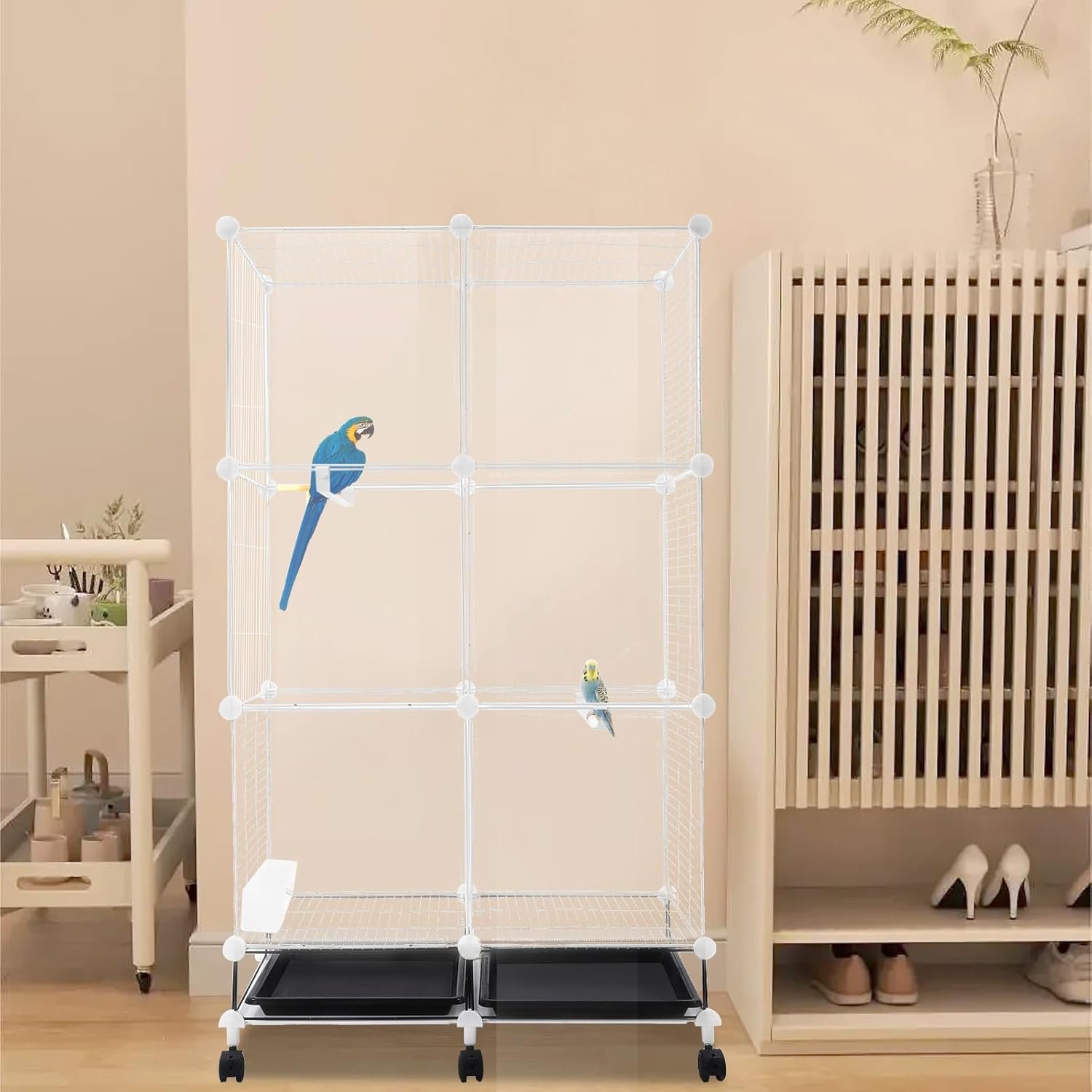 - Universal wheels with brakes: easy to move and secure the cage
