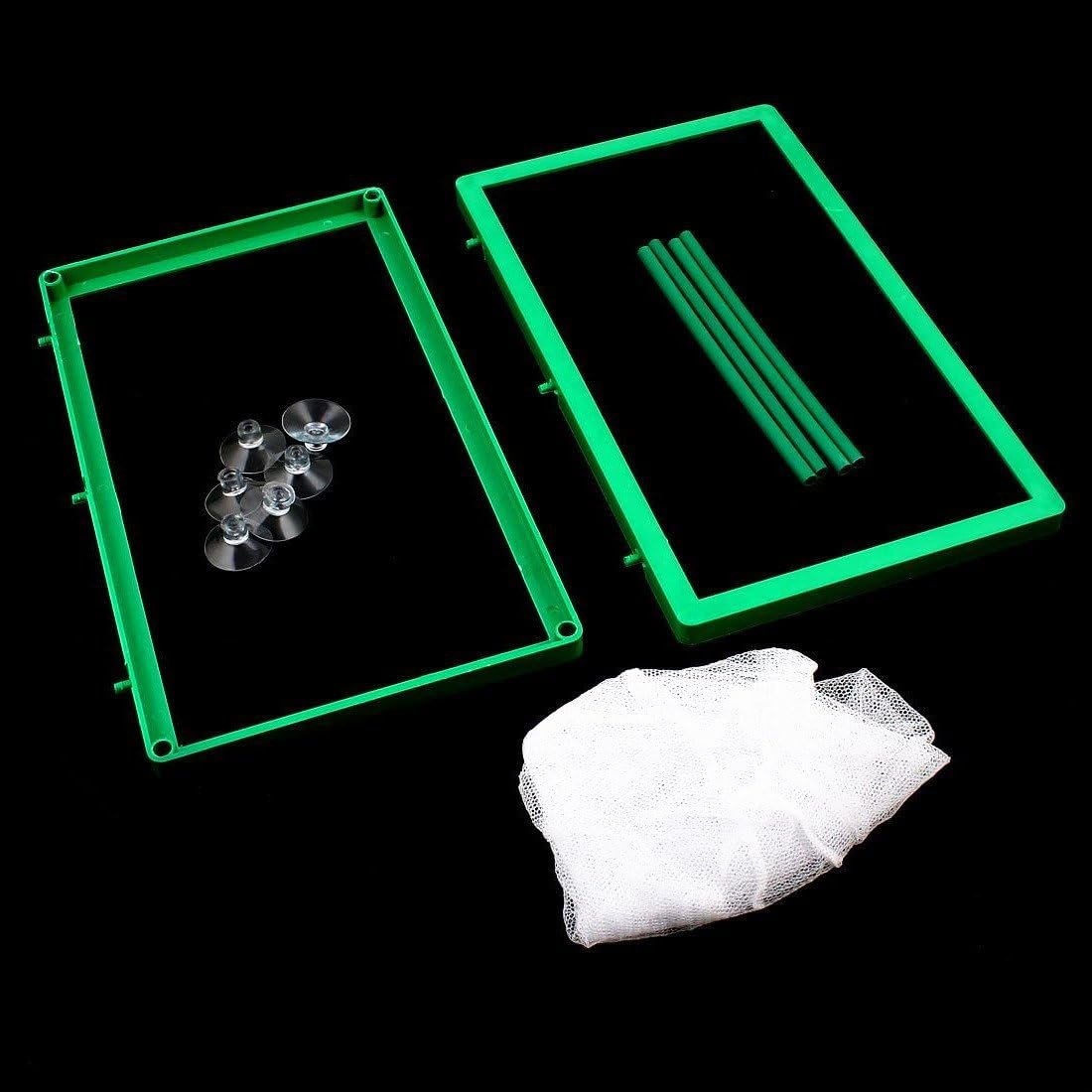 This breeder is constructed with a net and plastic frame, making it durable and easy to clean. It can be easily attached to the top of your aquarium using the included suction cups. The breeder divides into two spaces, making it easy to install and keep the top of the net above the water level.