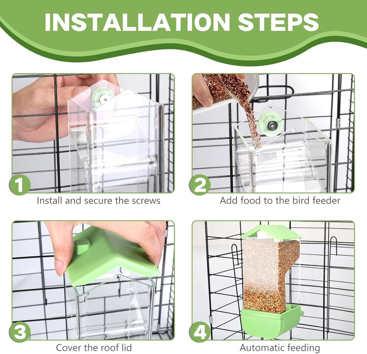 • Automatic Feeding: Bird food slides down automatically, ensuring a constant supply.