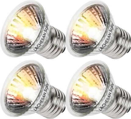 4-Pack 50W UVA Bulbs, Fit E26 Heat Reptile Lamp, Light Turtle Heat Lamp for Reptiles and Amphibian Tanks, Terrariums and Cages, Works with Various Lamp Fixtures