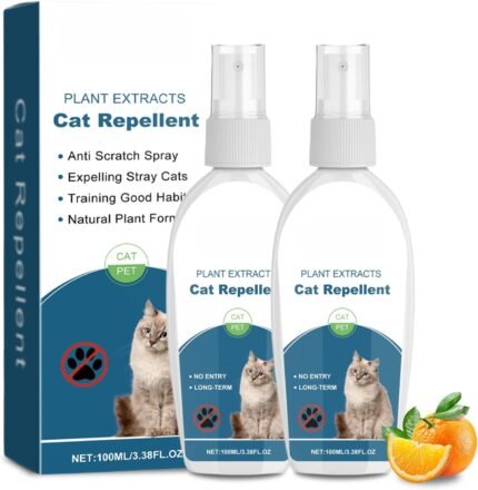Cat Deterrent Spray, 100% Natural Cat Deterrent Outdoor, Effective Cat Spray Deterrent for Urine Marking & Scratch, Citrus Bitter Apple Spray for Cats, Safe for Child & Pet Humane Training Aids, 2PCS