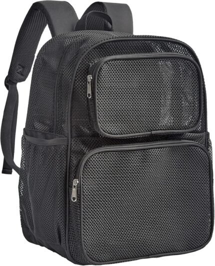 COVAX Large Mesh Backpack, Semi-transparent College Backpack, See Through Mesh Bookbag with Bungee and Comfort Padded Straps for Travel, Swimming, Beach, Outdoor Sports