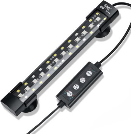 hygger 24/7 Mode Submersible Aquarium LED Light, Full Spectrum Hidden Fish Tank Light with 3 Rows Beads 7 Colors Auto On Off Sunrise-Daylight-Moonlight, Adjustable Timer Brightness 6W