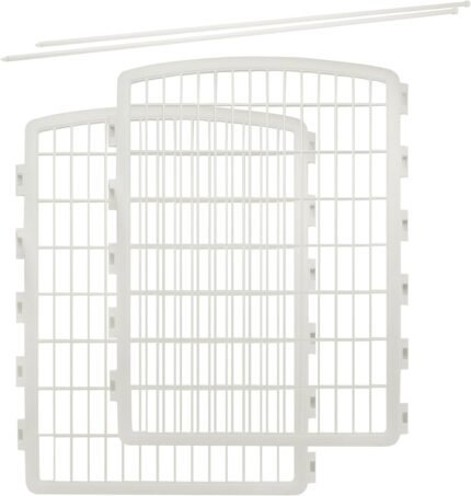 IRIS USA 34” Pet Playpen 2 Panel Add-On with Connecting Rods, Dog Playpen, Puppy Small Medium Dogs, Heavy-Duty Molded Plastic, Rust-Free, Non-Skid Rubber Feet, Easy Assemble, Customizable, White