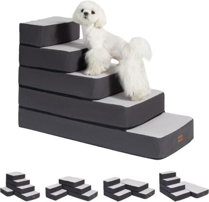 5-Step Adjustable Dog Stairs for High Beds, Dog Steps for Small Dogs and Cats, Foldable Pet Stairs for Bed Climbing, Non-Slip Pet Step Indoor, Grey