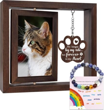 LIFLARMED Cat Memorial Gifts for Loss of Cat – Loss of Cats Sympathy Gift, Pet Memorial Gifts for Cats, In Loving Memory Gift, Rotating Wooden Cat Picture Frame for 4×6 Photo