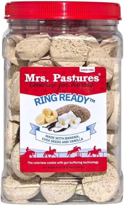 Mrs Pastures Ring Ready Cookies & Treats for Horses – Premium Horse Treats – Made with Sweet Potato, Kelp & Turmeric – Preservative Free – All Natural Ingredients – No Corn or Soy, USA Made (36oz Jar)