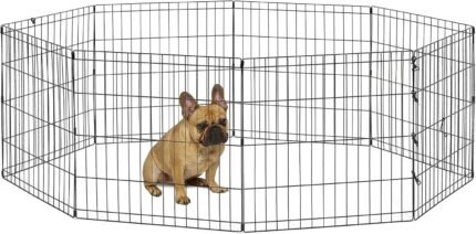 New World Folding Metal Puppy/Dog Exercise Pen, Indoor/Outdoor Playpen with No Door, Provides 16 Sq Feet of Play Space, 24-Inches Tall, Black E-Coated
