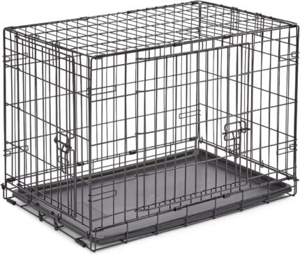 New World Double Door Folding Metal 30-Inch Dog Crate, Includes Leak-Proof Pan, Floor Protecting Feet, & New Patented Features, for Medium-Sized Breeds