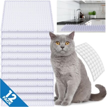 Petfolio 12 Pack Upgraded Scat Mat For Cats – 16 x 13 Inch Cat Repellent Mat With Uneven Spikes Is An Effective Pet Training Mat Device For Cat Repellent Indoor & Outdoor To Deter Cats & Other Animals
