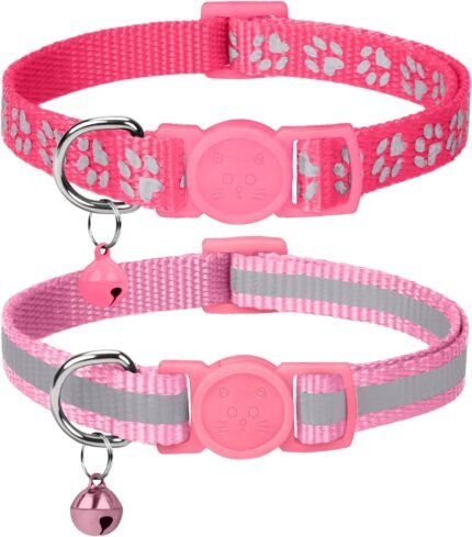 Taglory Kitten Collar Breakaway with Bell, 2 Pack Girl Boy Pet Kitten Collar Adjustable 6-8 Inch for 2-6 Months Cat, Pink