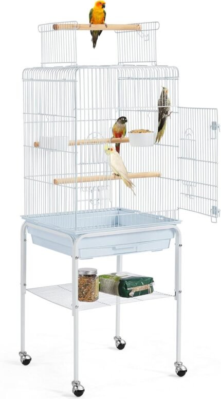 Price: (as of – Details) Topeakmart Extra Large Parrot Bird Cage Macaw Cockatoo Cockatiels African Grey Bird Cage with Open