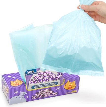 BOS Amazing Odor Sealing Cat Waste Disposal Bags – Durable, Unscented [Size: L, Color: light blue] (60 Count, Pack of 1) (60 Bags) ★NOT a litter box liner